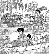 「フロリダのセミノール族インディアンはボブと呼ばれる擬餌針でバスを釣っている。それはヨーロッパ人が大陸を植民地化する以前から何世代にも渡って実践されてきた漁のやり方である。二人でカヌーに乗り込み、一人は船尾で操船、もう一人が船首で3メートルほどの竿を持つ。その竿には50cmほどの糸が結ばれており、その糸の先端にはボブと呼ばれる擬餌針が結ばれている。操船者は岸に沿って平行を維持するように、そして水面に生えるウィードのエッジにボブが届くようにゆっくりとパドルを漕ぎ、船首の釣り人は巧みにボブを操り、真上からボブをチョンチョンと水面に着けてはバスを誘う。ウィードの影に身を潜めていたバスはたまらずボブに食いつき、その日の彼らの獲物となる。」