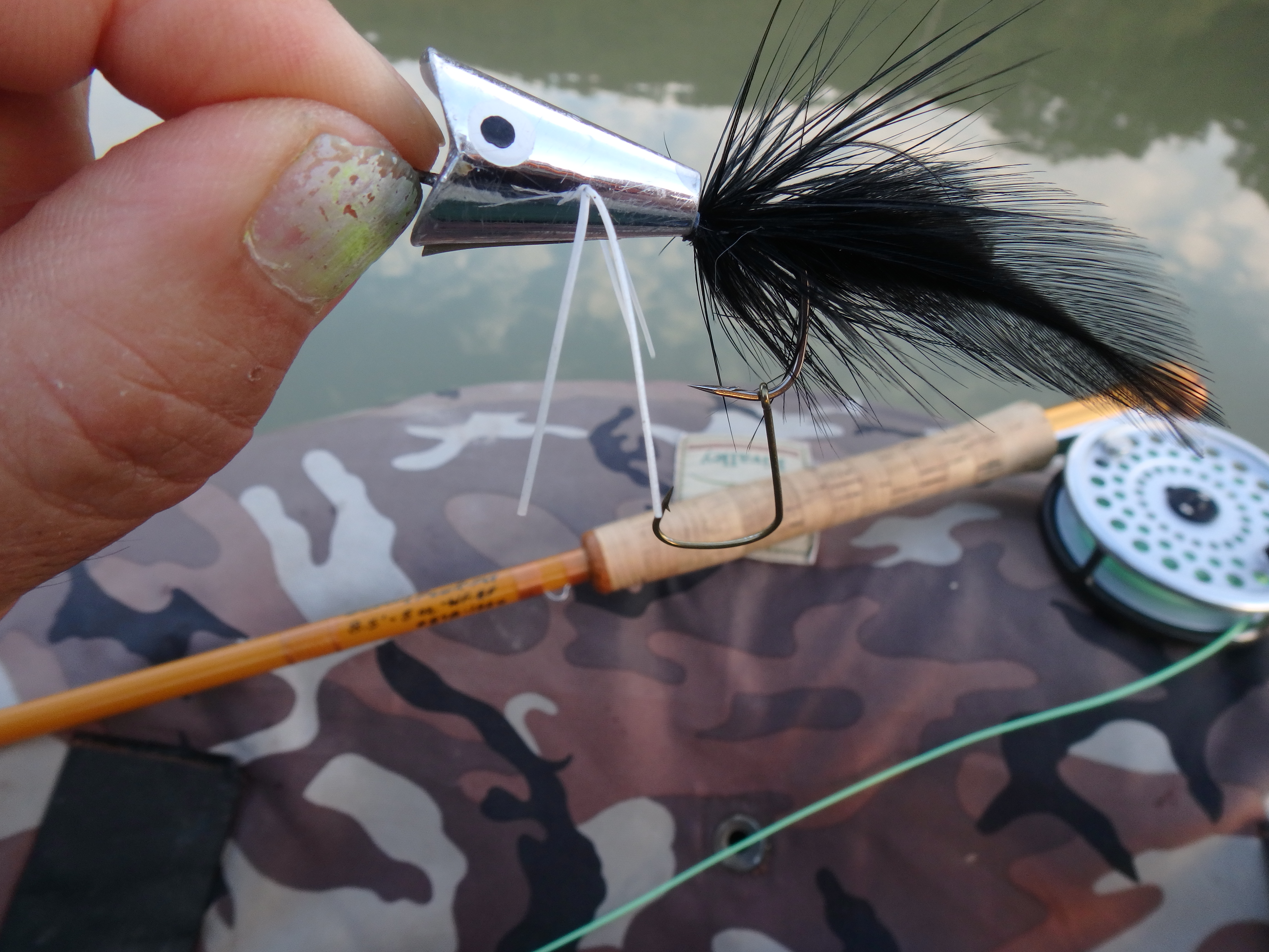 問題はBです。ポッパーが口の中に入らないとフッキングしない点。これは一見難問ですが、ルアーと比較すると問題解決が見えてきます。フライポッパーはルアーとは異なり、フックはボディにリジットマウントされています。そもそもこれが良くないです。アクションさせるとフックポインが上を向いたり下を向いたり、色々な方向に動き、結局捕食されないとフッキングしないわけです。最近のスレたバスはゴボン!と丸呑することは少なく、捕食直前でバフッ〜っと吹くようなバイトをすることがよくあります。なかなか口の中に入れてくれないのです。ルアーはその点でも優れていて、フックがボディに対しフリーなので、一部に喰いつくと近くにあったフックが絡み付き、そのままフッキングすることになるのです。しかも最低でも2箇所にトレブルフックを装備しているのですから、フッキング率を針の数で計算すれば、フライの6倍の可能性があると言っても良いかもしれません。