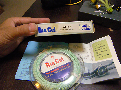 これは何かというと、見ての通り、ヘドンのフライラインです。しかもBUG TAPER WF8F。ヘドンのバスバグテーパーなんてカッコよすぎます!ということで、思わずまた余計なモンを買ってしまったというわけですが、もちろん、こんなもん使うために買ったわけでもなく、たまーに出してきて眺めたり、説明書を読んだり、或いは匂いを嗅いだりして、密かに楽しむための変態グッズに他なりません(笑)。